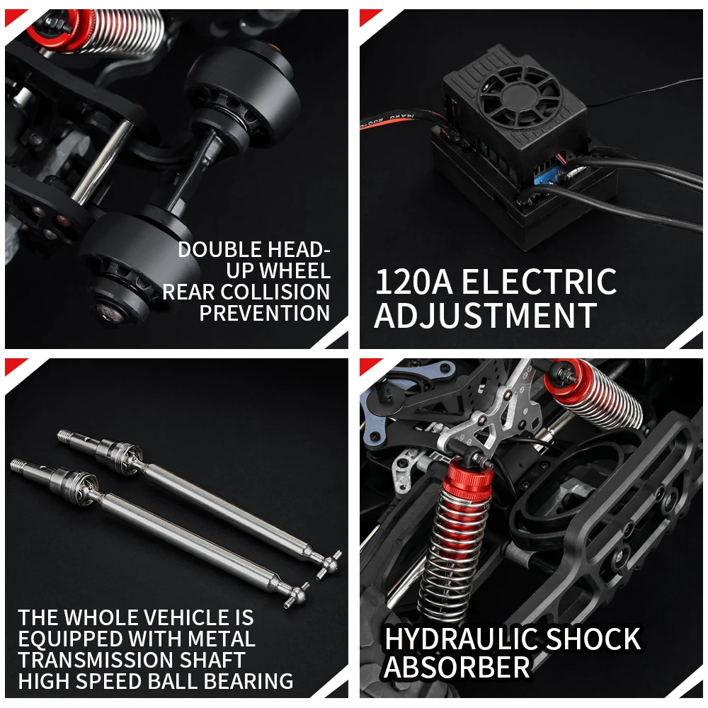 The exceptional 3670 brushless motor enables it to run at up to 100km/h+. Enjoy driving as fast as the real car! The 5000mAh high-capacity LiPo allows you to steer continuously long running time .