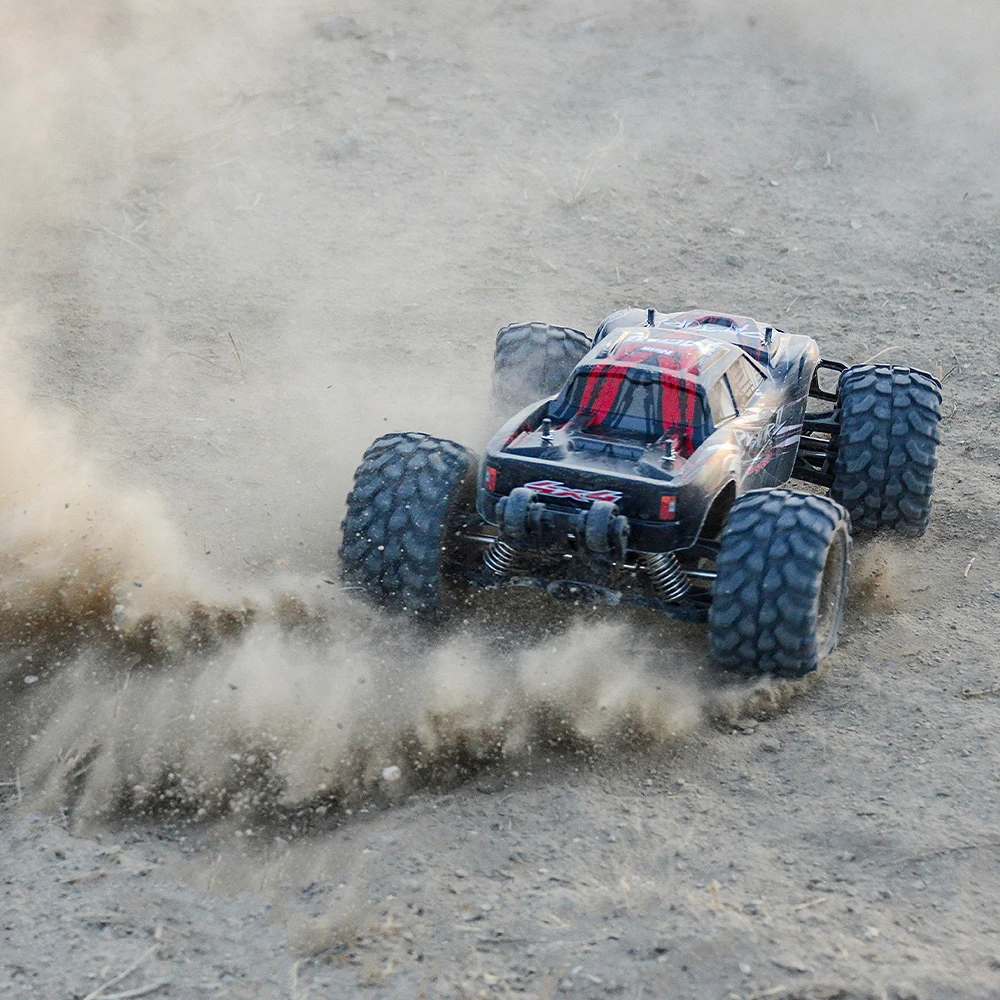 As the monster truck raises up the head, it can roll again and again on the grass and the loose mud. The high jump is only a piece of cake as it slips up any inclined plane. However you bash it, the strong aluminum alloy chassis, shock absorbers can handle well the considerable impact.