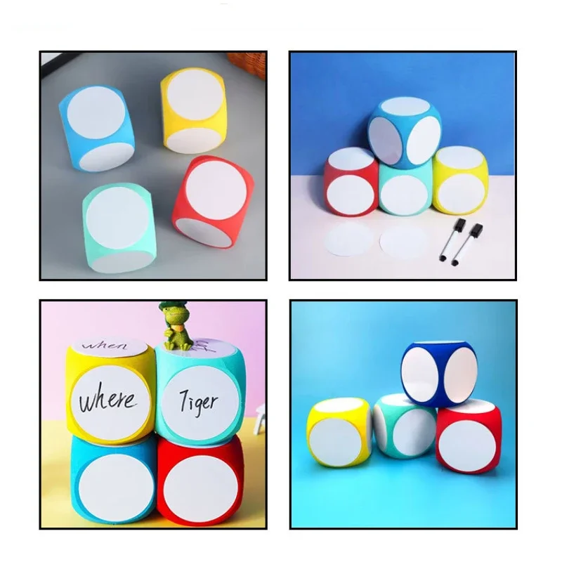 1 Pc DIY Blank Dice Write On/Wipe Off Dice Portable Cleanable Blank Game Cubes for Classroom Teaching Dry Erase Outside Dice