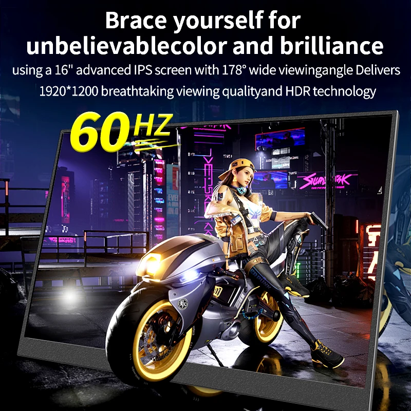 Experience crisp visuals with a 16-inch FHD 1200P screen, offering a clear and vibrant viewing experience.