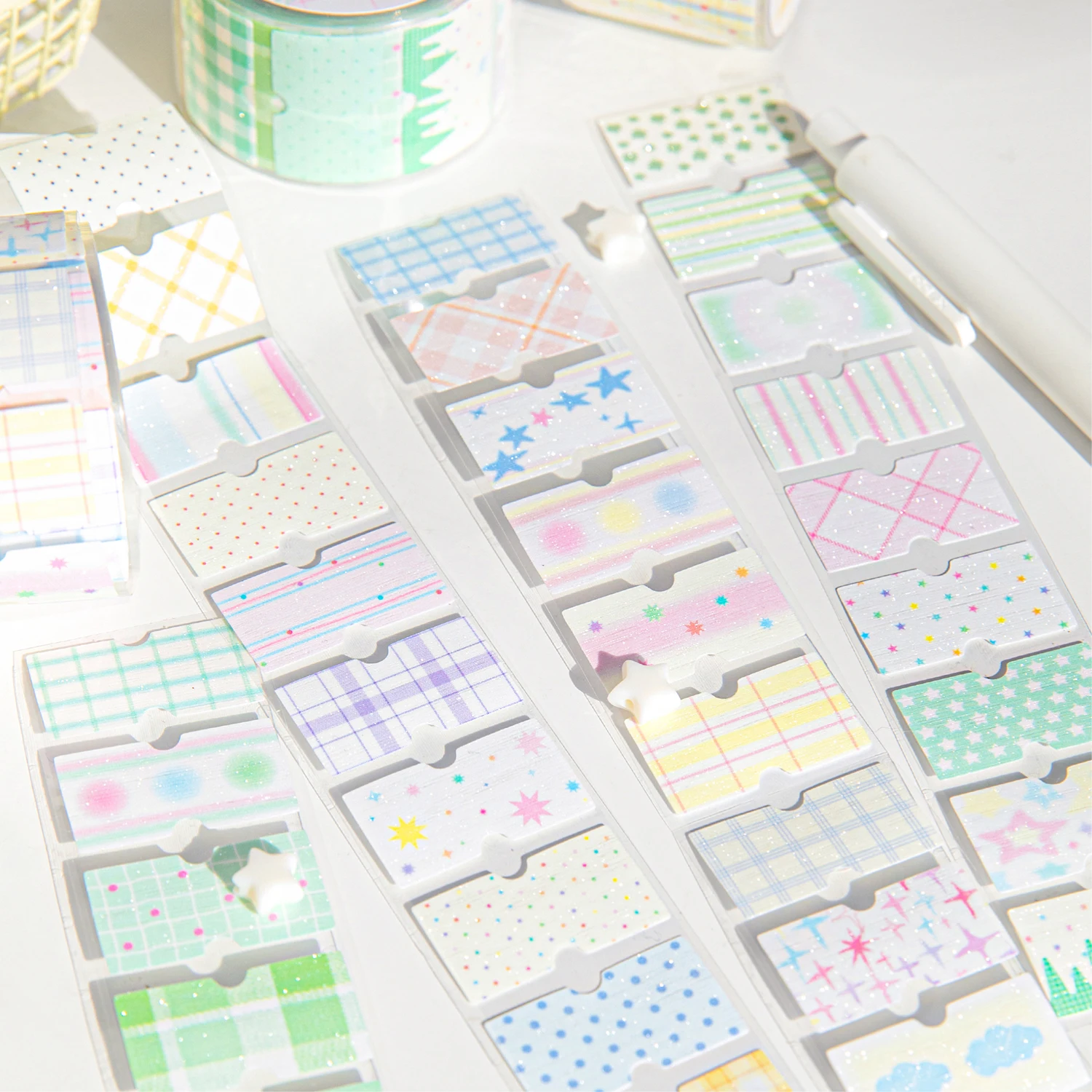 Add a touch of elegance to your projects with our pastel glitter finish masking tape, perfect for scrapbooking and journaling.