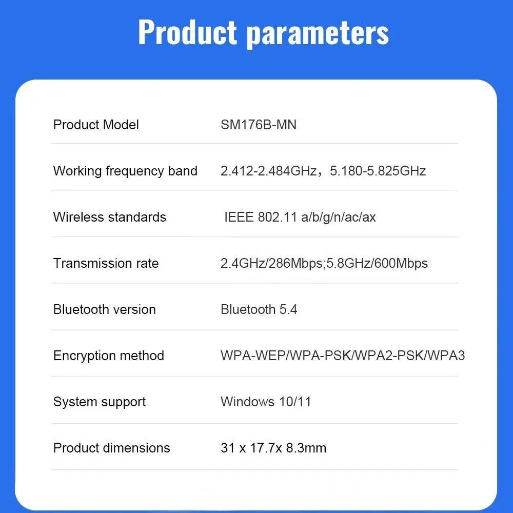 2IN1 Driver Free Network Card WiFi6 Bluetooth 5.4 AX900Mbps Dual Band 2.4G+5GHz Wireless Receiver Adapter For PC Laptop Win10/11