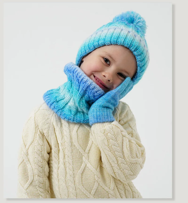 3Pcs Children Winter Hat Scarf Gloves Set Fleece Lining Warm Kids Knitted Hat Suit for Girls Boys Child Cap Kids Beanie 3-8Y