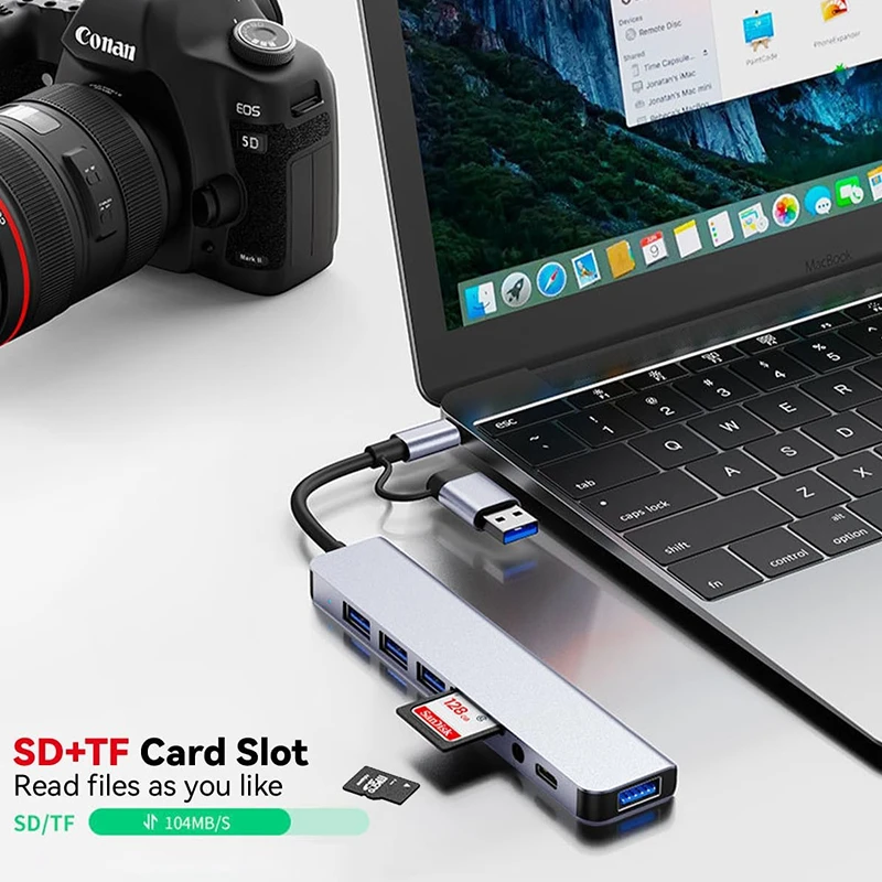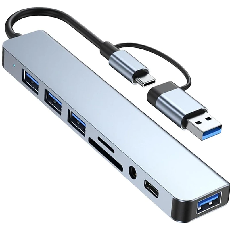 8 in 2 Type C HUB Docking Station USB Micro SD Card Reader with 3.5mm Audio Jack Adapter Laptop Tablet Phone Disk Converter