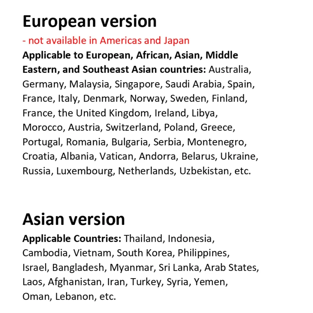 Asian version: 4G LTE: B1/B3/B5/B8/B38/B39/B40/B41