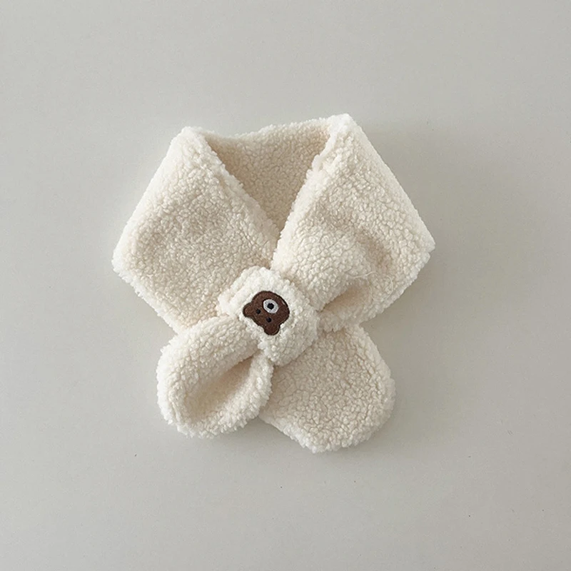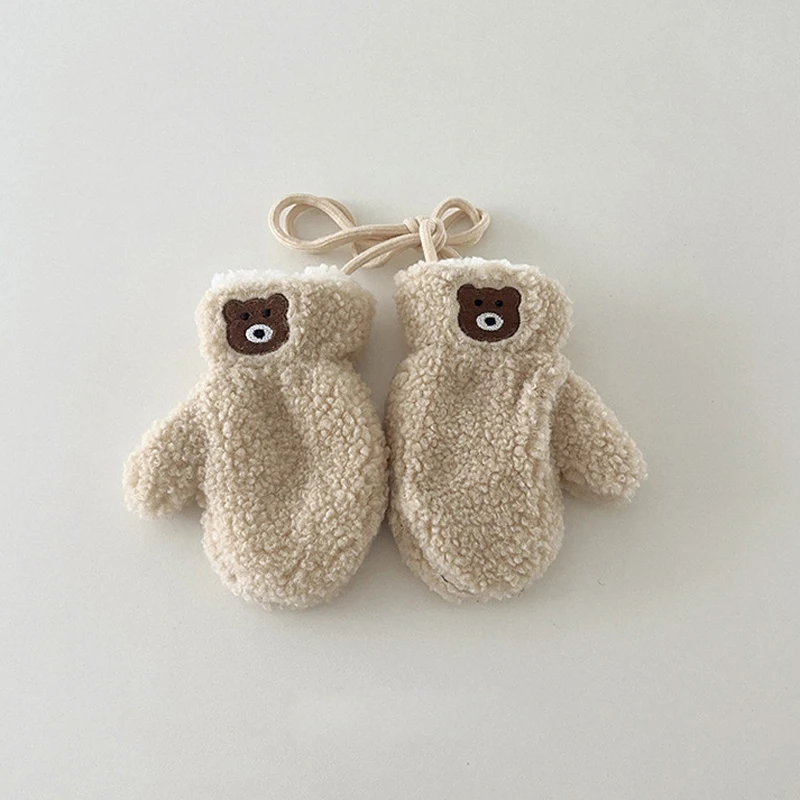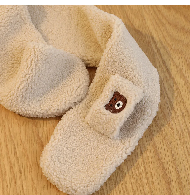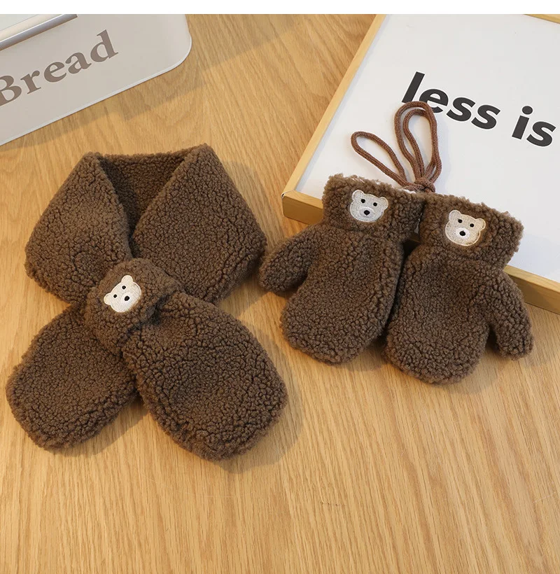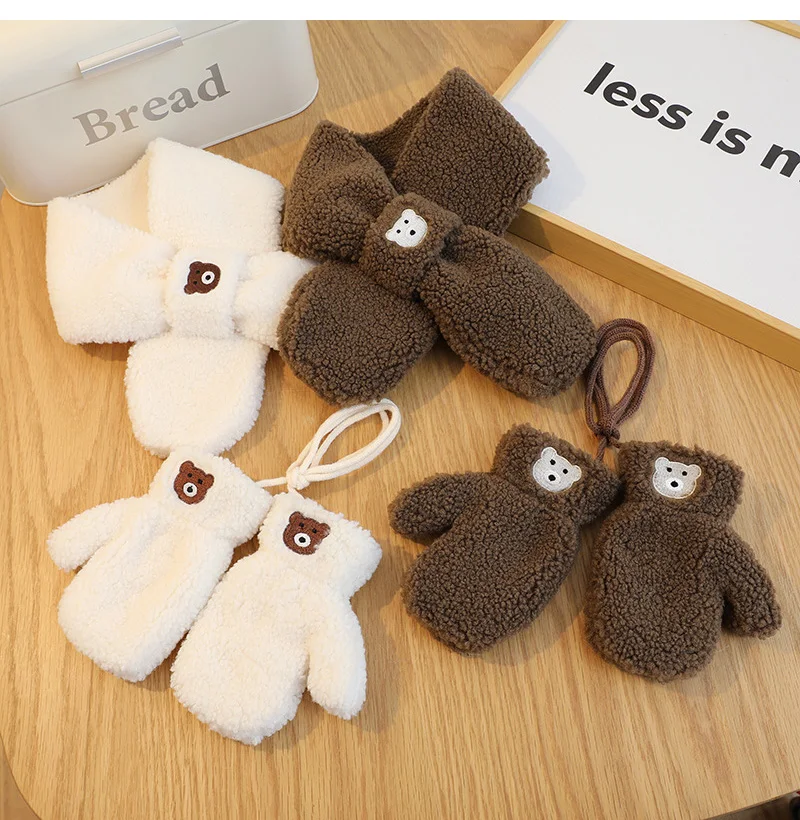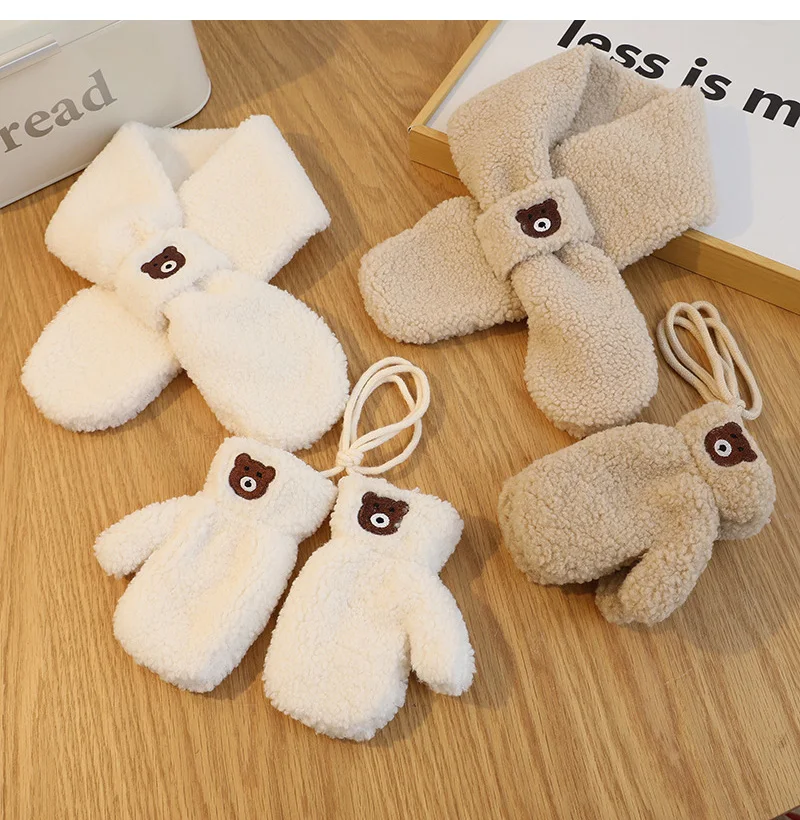 Bear Children Winter Mittens Thicken Warm Halter Baby Gloves for Girls Boys Lamb Wool Korean Kids Scarfs Baby Neck Warmer 2-6Y