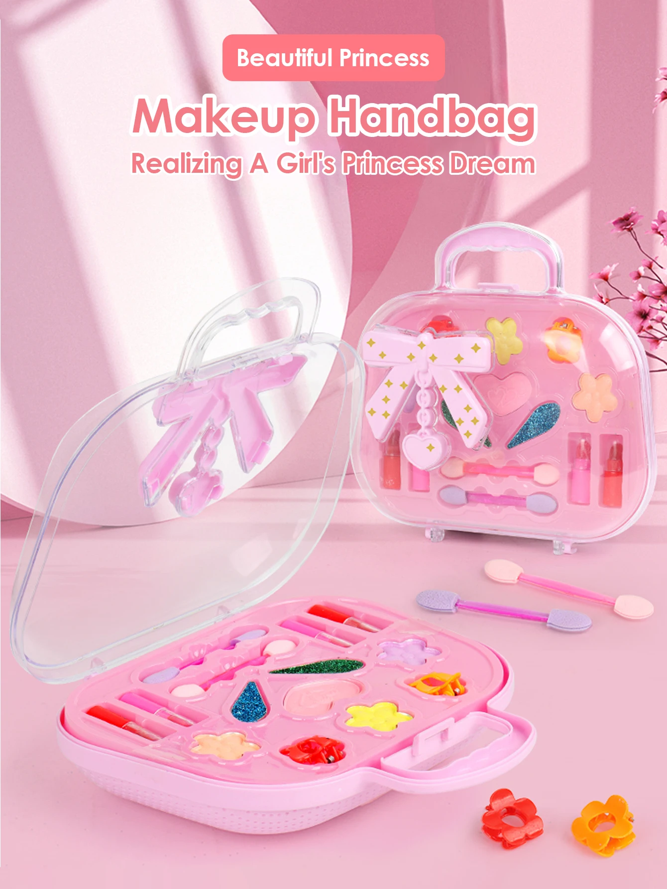 Birthday Christmas Gift for Kids Party Cosplay,Princess Make Up Box Washable Pretend Play Cosmetics Handbag Toy