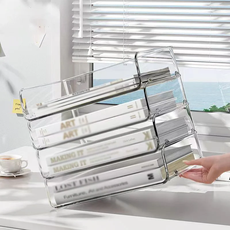 –Keep your desk clutter-free with this stackable storage tray, ideal for organizing papers, magazines, books, and stationery.