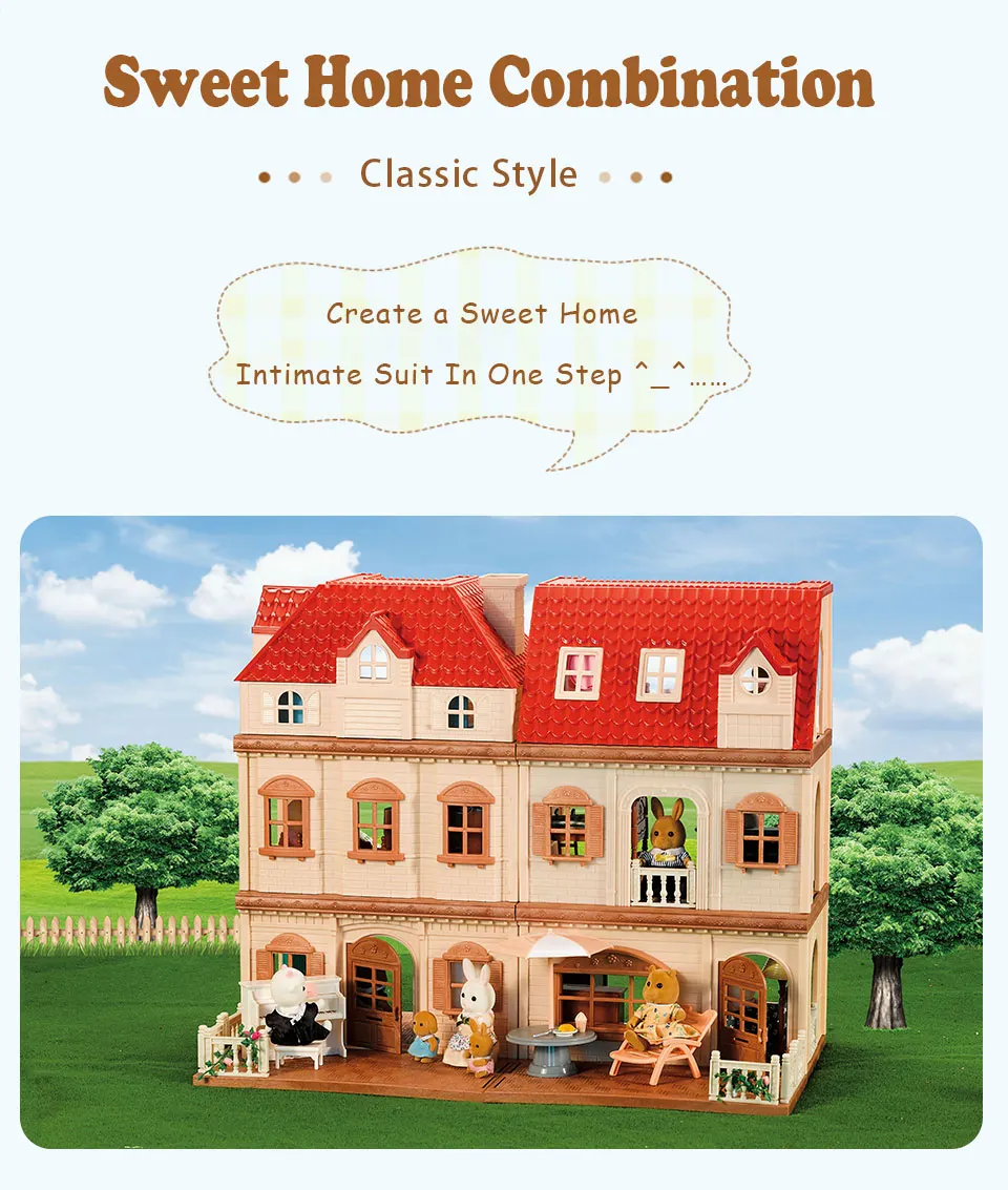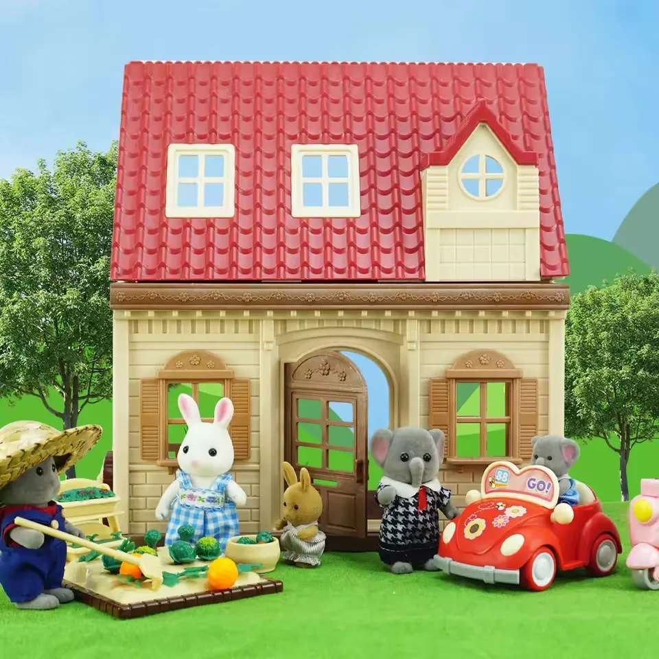Family Dollhouse Furniture Playset Cabin Doll House DIY Cottage Pretend Play Kitchen Dollhouses Rabbit Dolls Birthdays Gifts