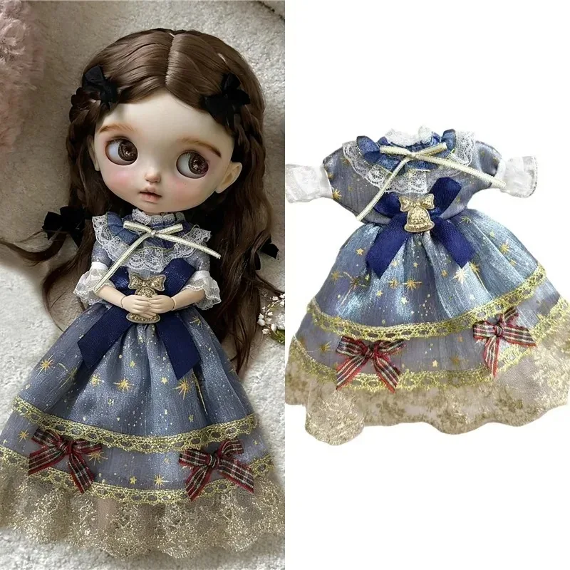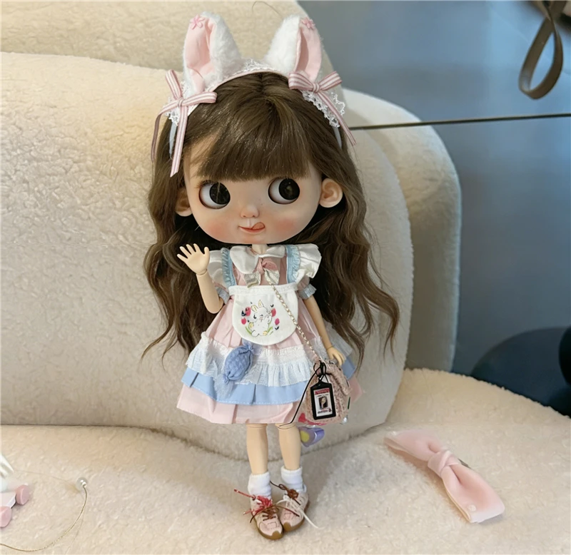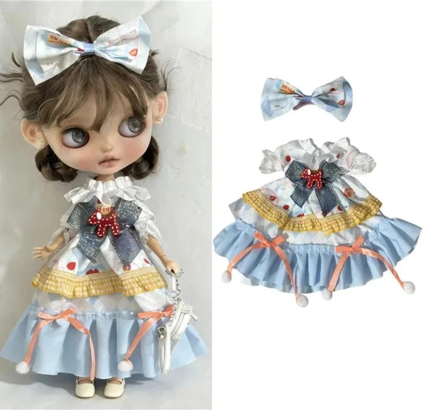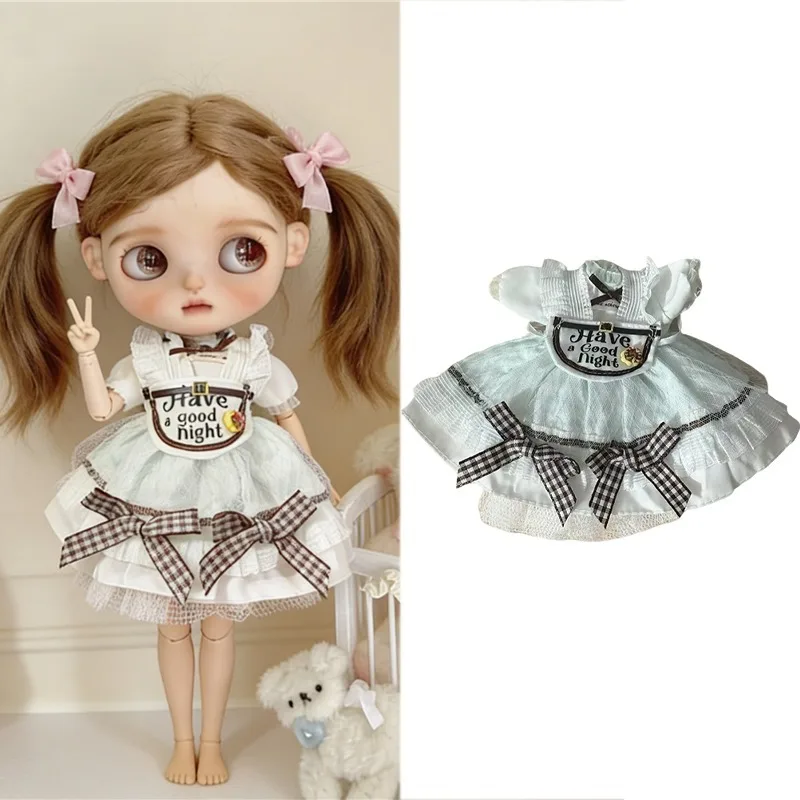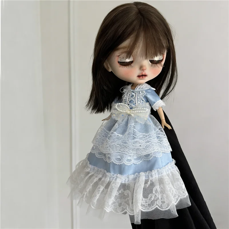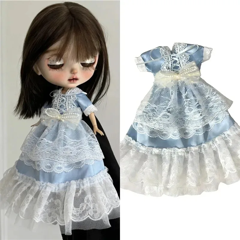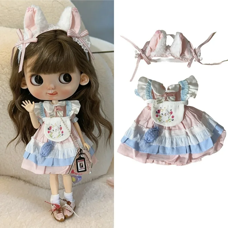 For Blythe Doll 30cm Blue Princess Dress Skirt Clothing Lace Maid Cartoon Animal Rabbit Summer Clothes OB24 OB22 1/6 Accessories