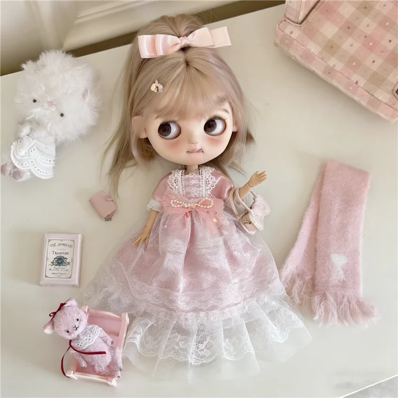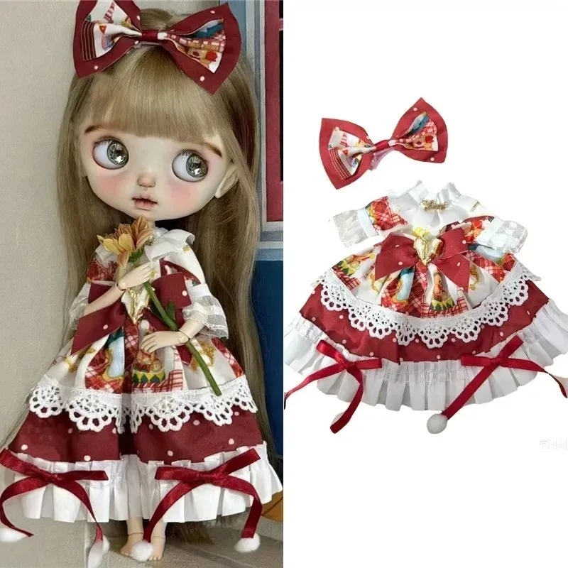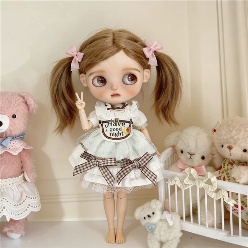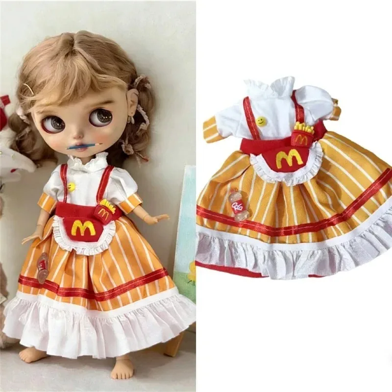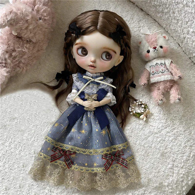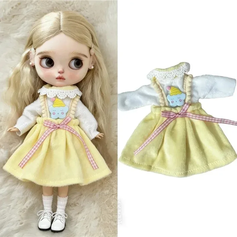 For Blythe Doll 30cm Blue Princess Dress Skirt Clothing Lace Maid Cartoon Animal Rabbit Summer Clothes OB24 OB22 1/6 Accessories
