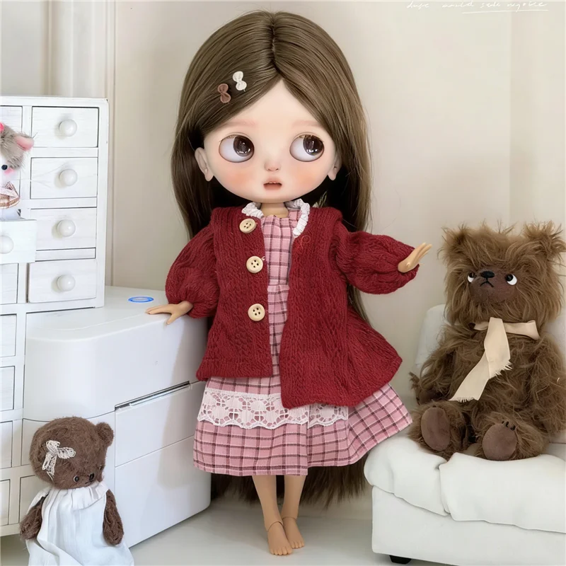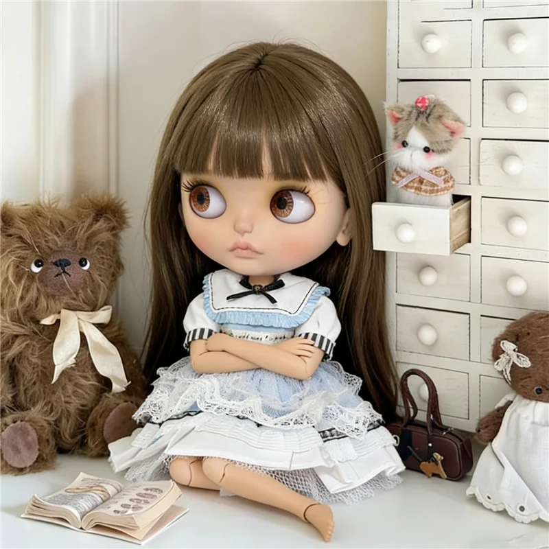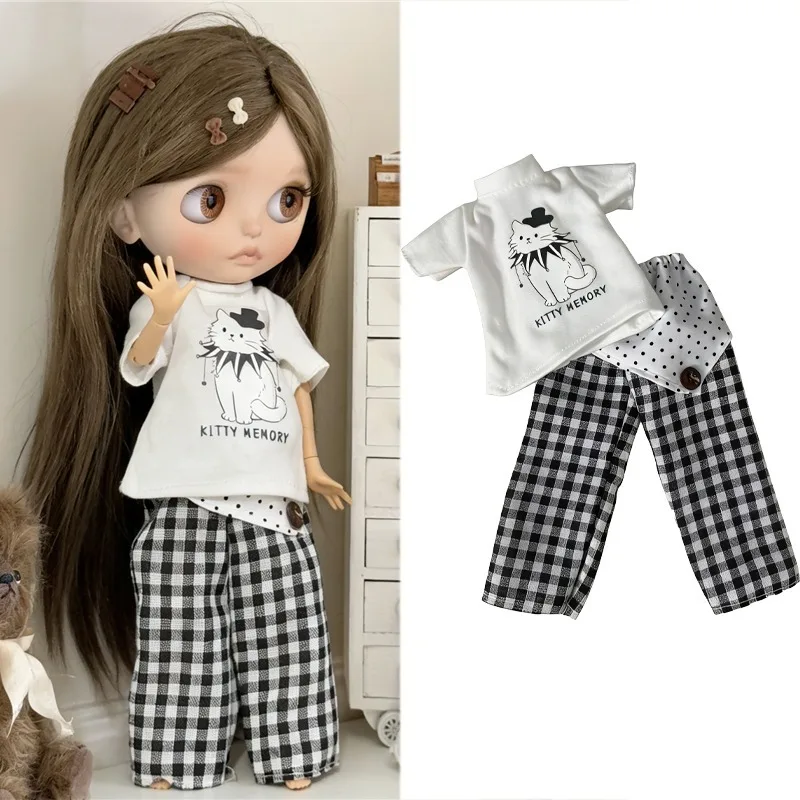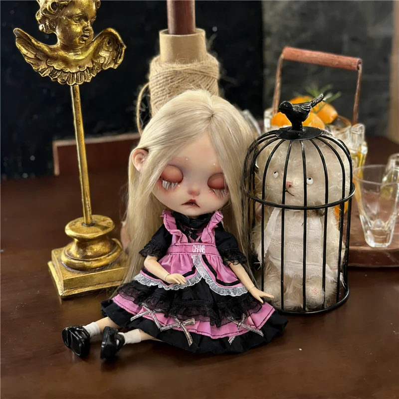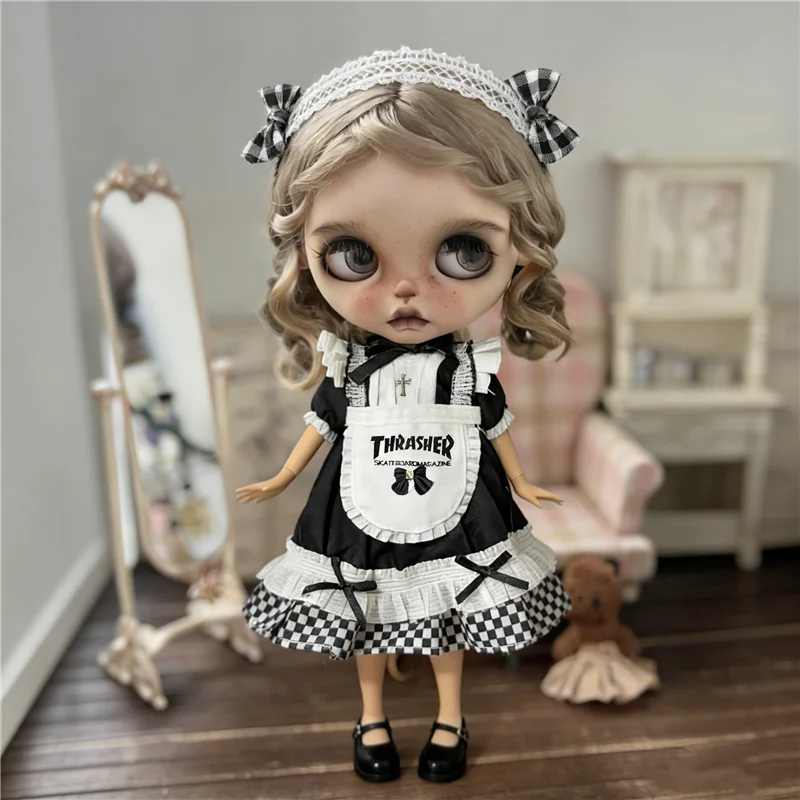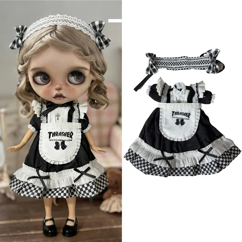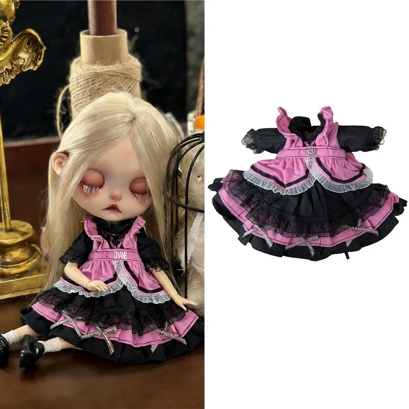 For Blythe Doll 30cm Blue Princess Dress Skirt Clothing Lace Maid Cartoon Animal Rabbit Summer Clothes OB24 OB22 1/6 Accessories