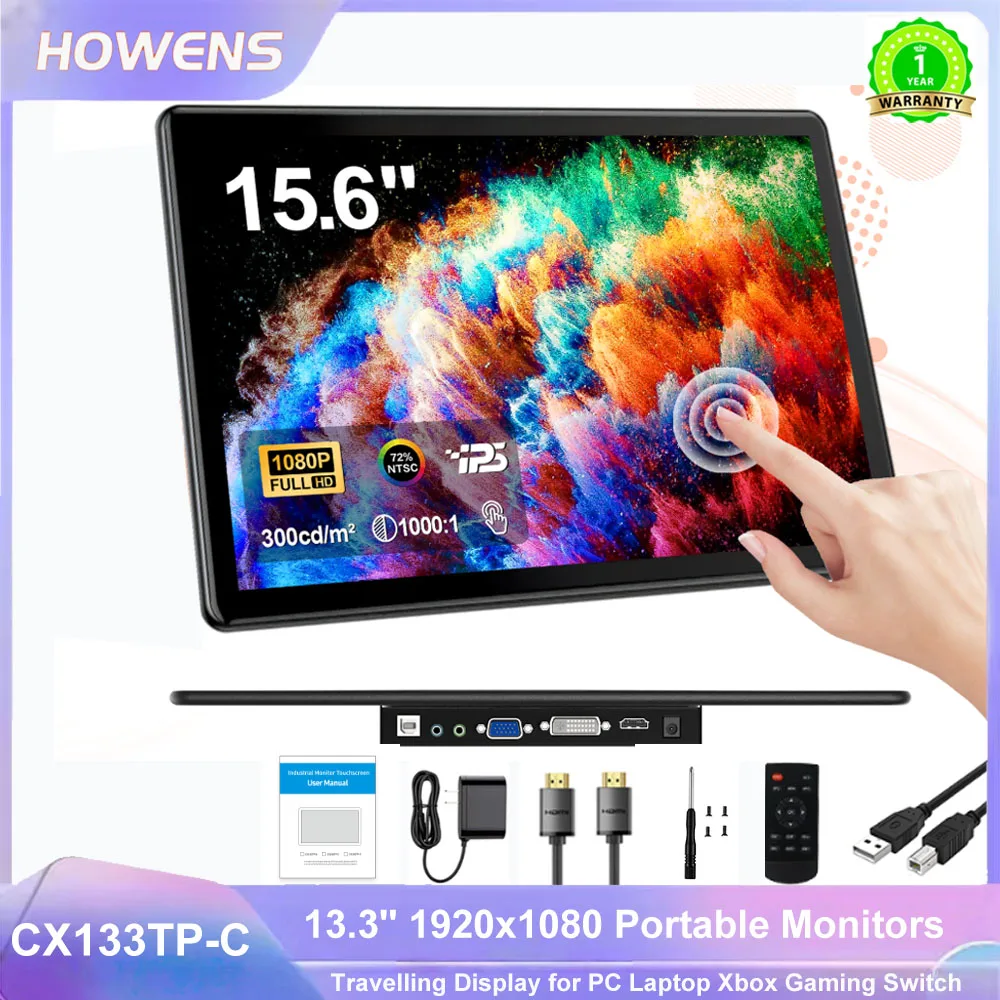 15.6-Inch Portable Monitor Touchscreen 1920*1080 USB HDR Low Blue Light For XBox PS4/ 5 Switch Loptop Cell Phone PC Extension