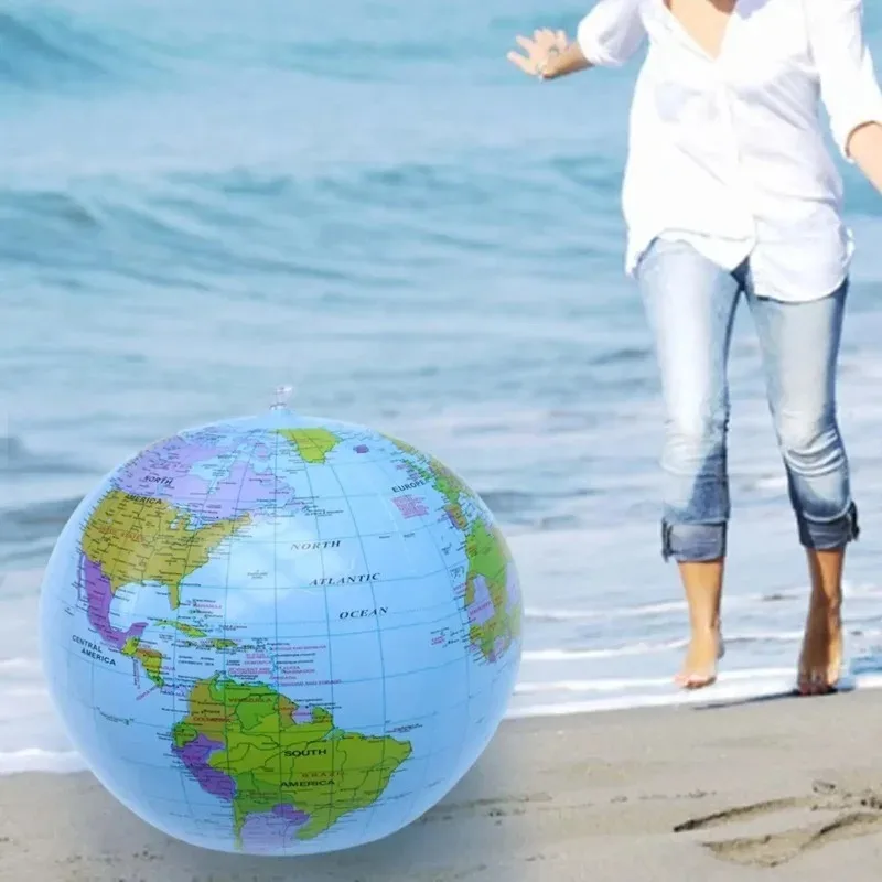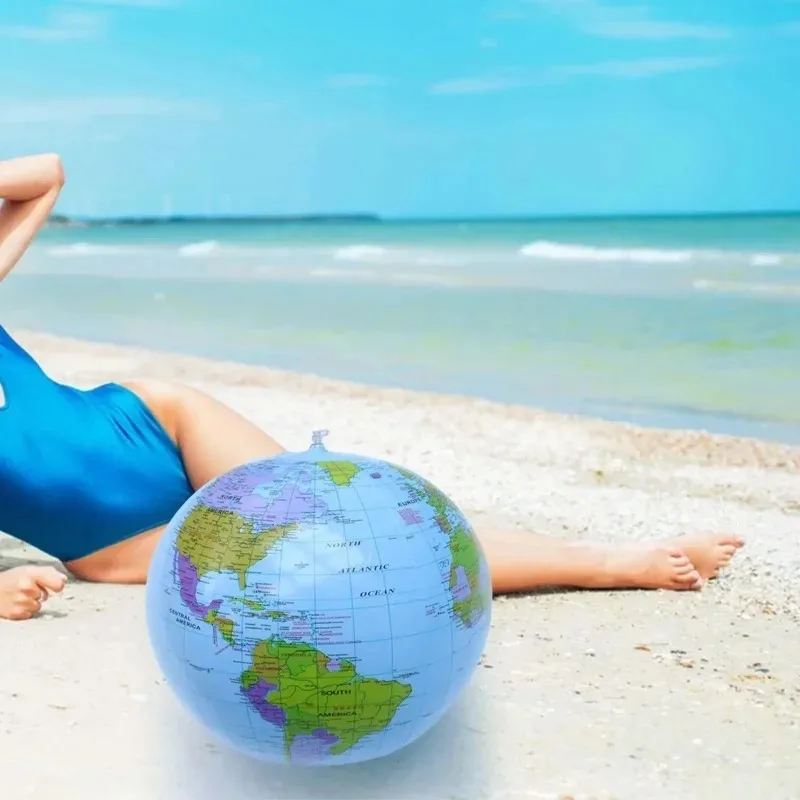 【Size】The inflatable earth ball globe is approx. 28cm/11.02inch in size after inflated, 38cm/14.96inch before inflated and it is big enough to serve as a beach ball