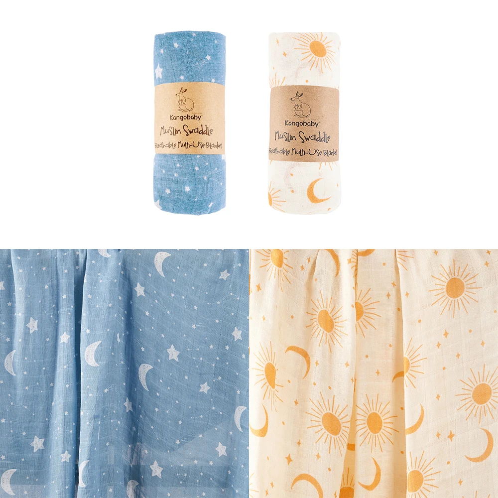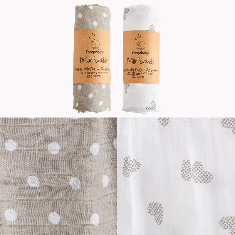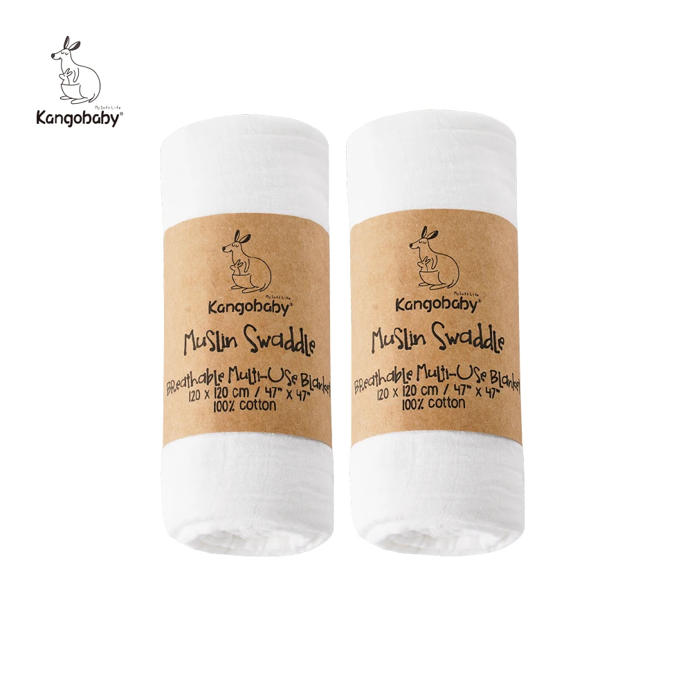Kangobaby 2pcs Set 100% Cotton Baby Muslin Swaddle Blanket