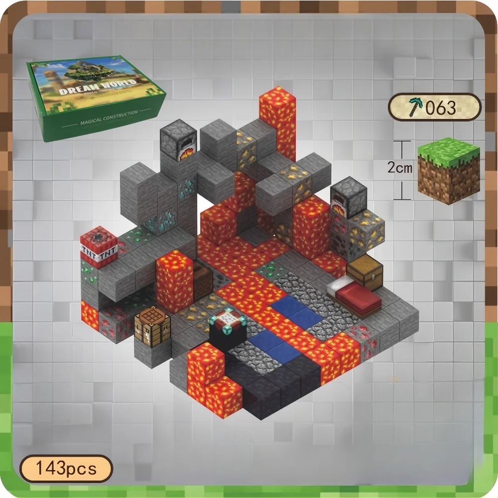 Magnetic Mine World Cube Building Blocks Magnet Word Set for Boys Girls Age 3+ DIY Model Kids Puzzle Assembly Toys Gifts