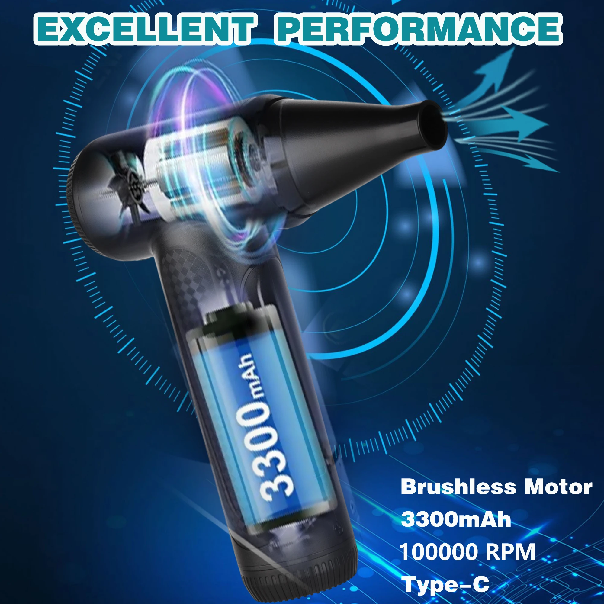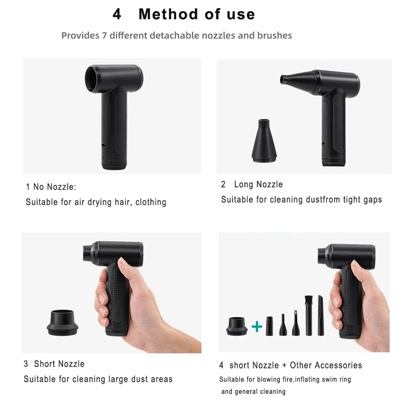 • High-Speed Operation :This brushless air duster operates at an incredible speed of 100000 rpm, ensuring quick and efficient cleaning for your devices.