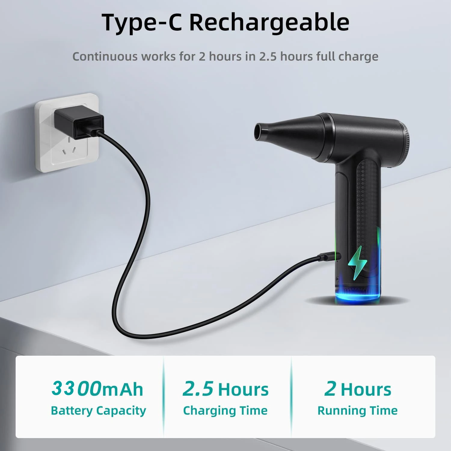 • Electric Powered :Powered by electricity, this air duster provides a clean and efficient cleaning solution without the mess of canned air.