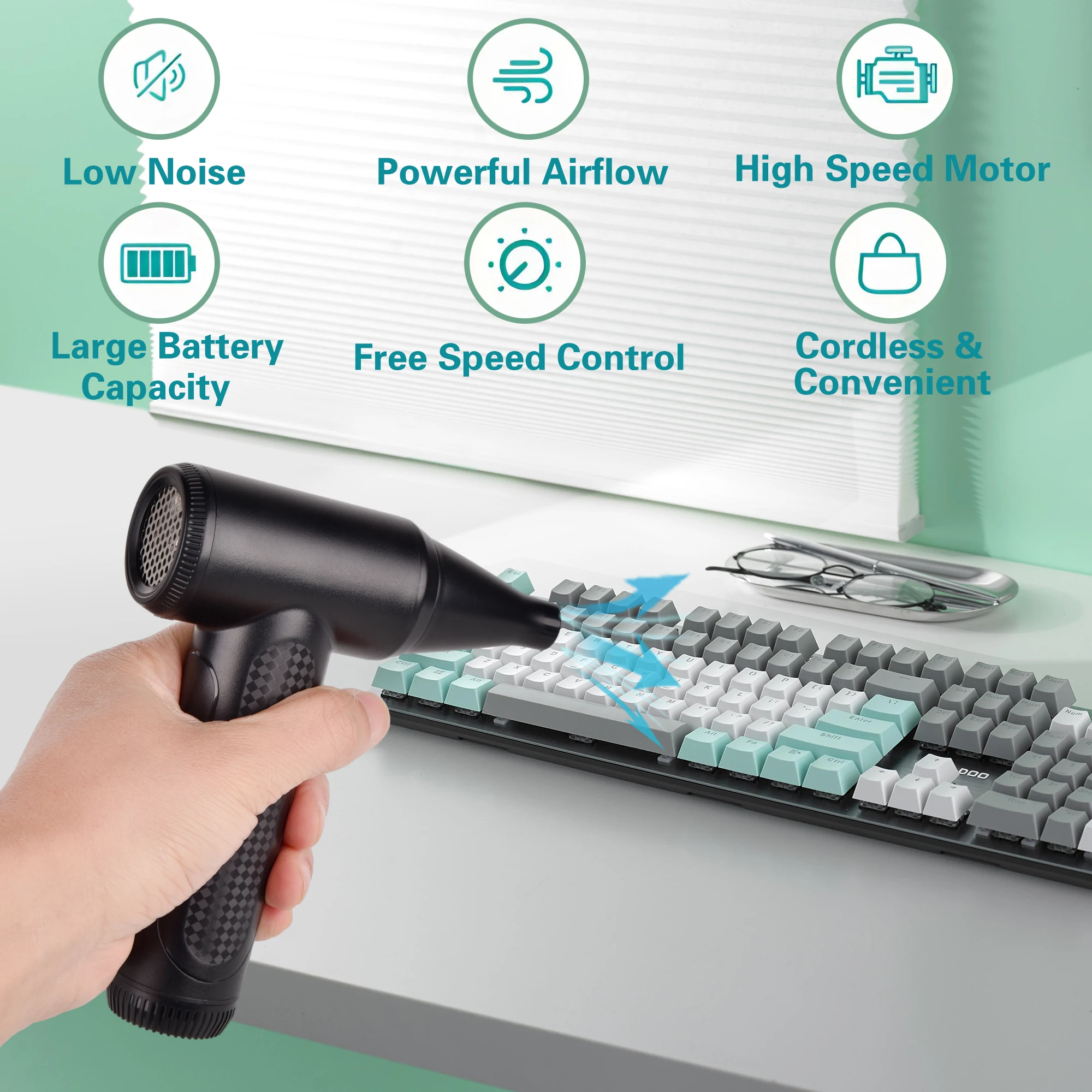 • Multi-use Design :Designed for versatility, this mini compressed air blower is perfect for cleaning computers, keyboards, cars, and more.