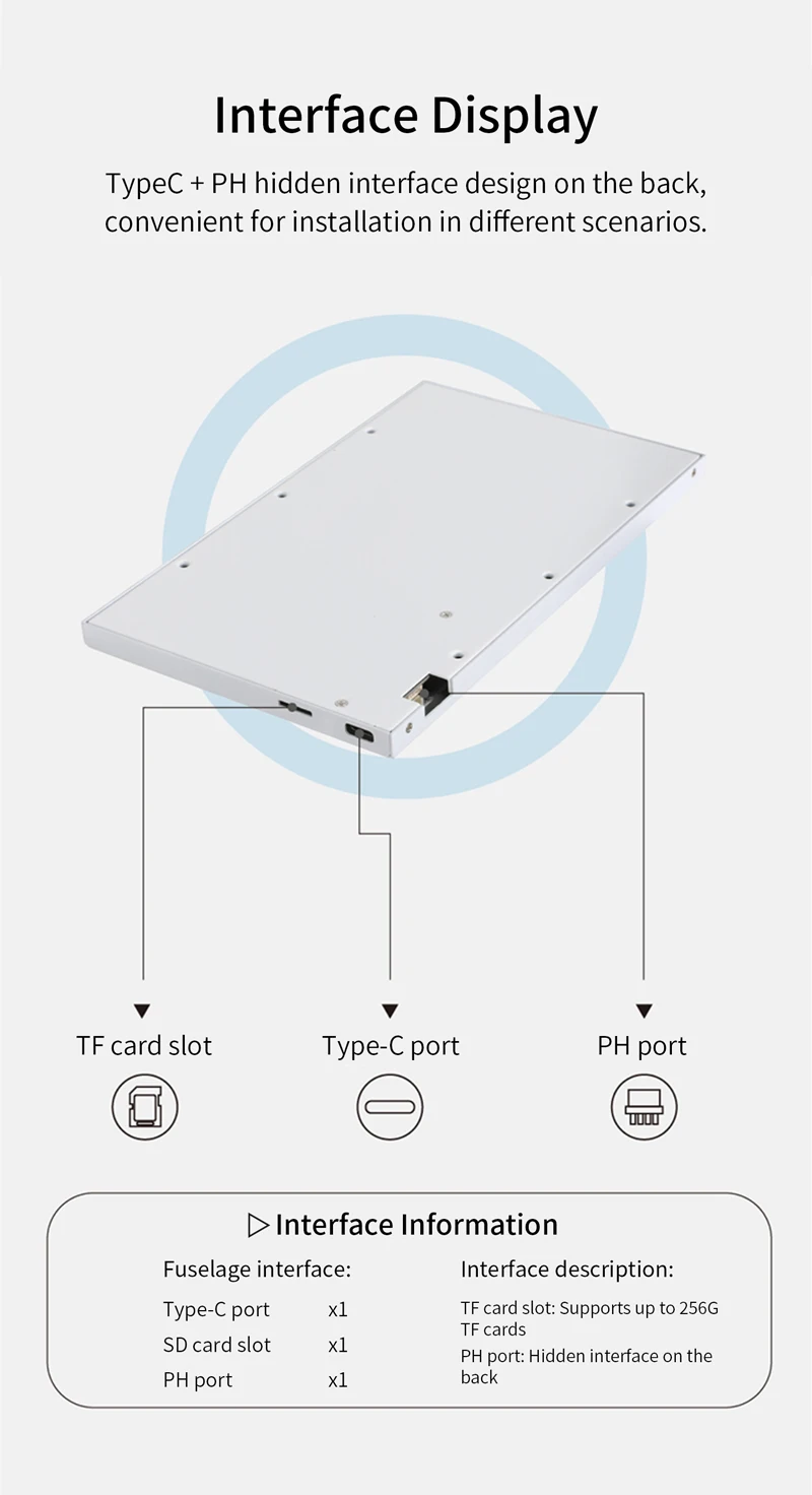 Interface: Usb-Type-C,TF card slot, PH back cable po