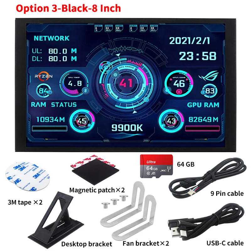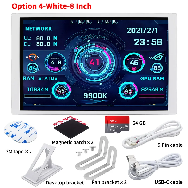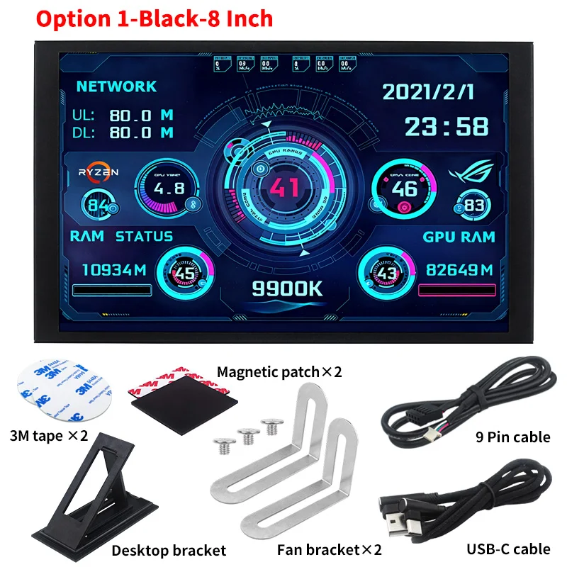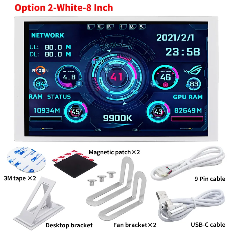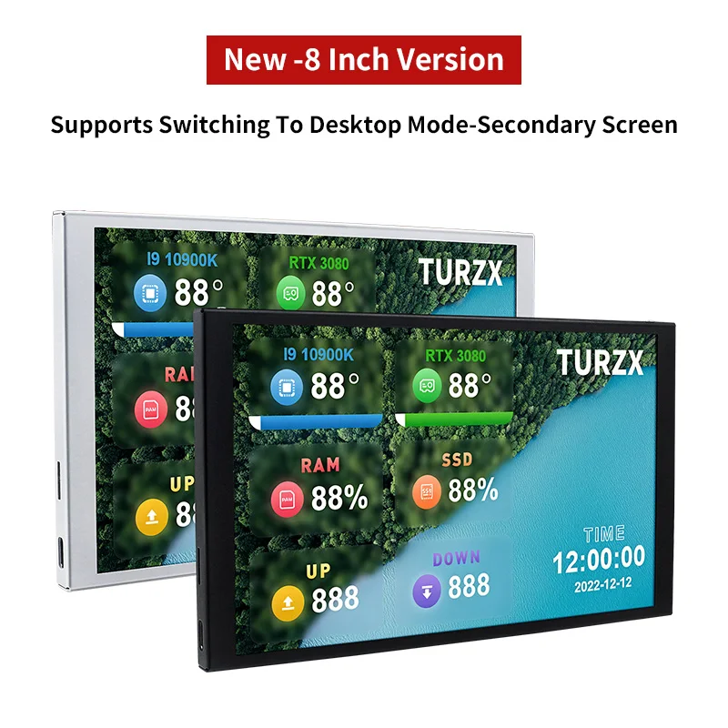 New 8 Inch IPS USB Smart Screen TURZX 1280×800 Secondary Screen Extended Desktop CPU GPU RAM Computer Monitor for Windows 10 11