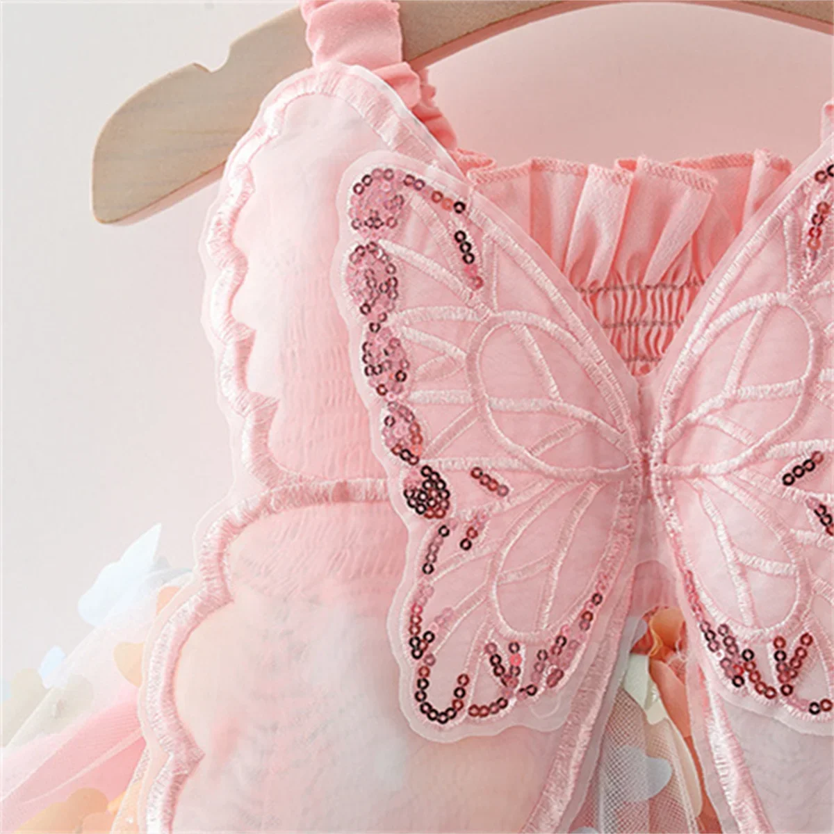 Summer Girls' Princess Party Birthday Dress Back Bow Wings Fairy Strap Embroidered Butterfly Mesh Dress