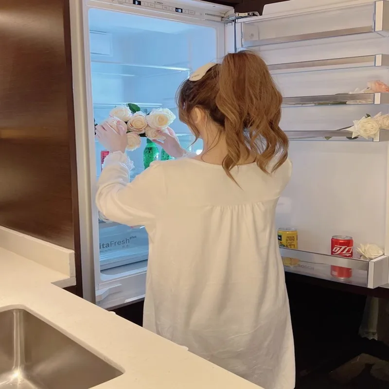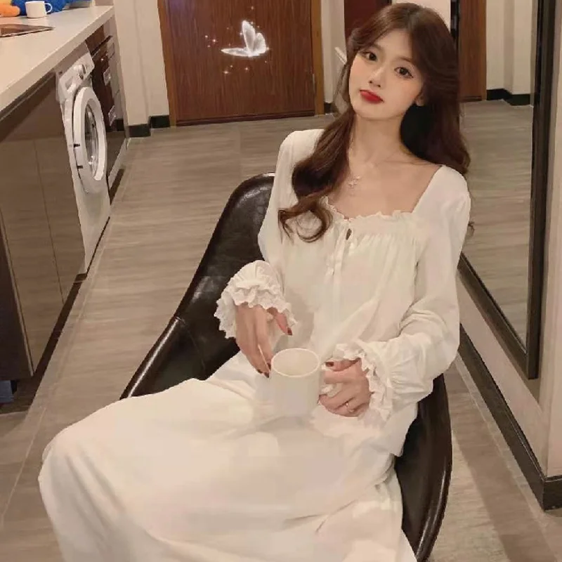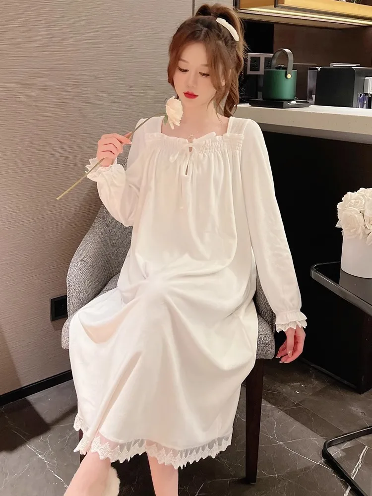 Name: Pregnant Women’s Clothing Set,Sea Island Velvet,Double-Sided,Thin Velvet,Pajamas,Fall And Winter,Sweet And Lovely,Retro,Homewear,Comfortable,White