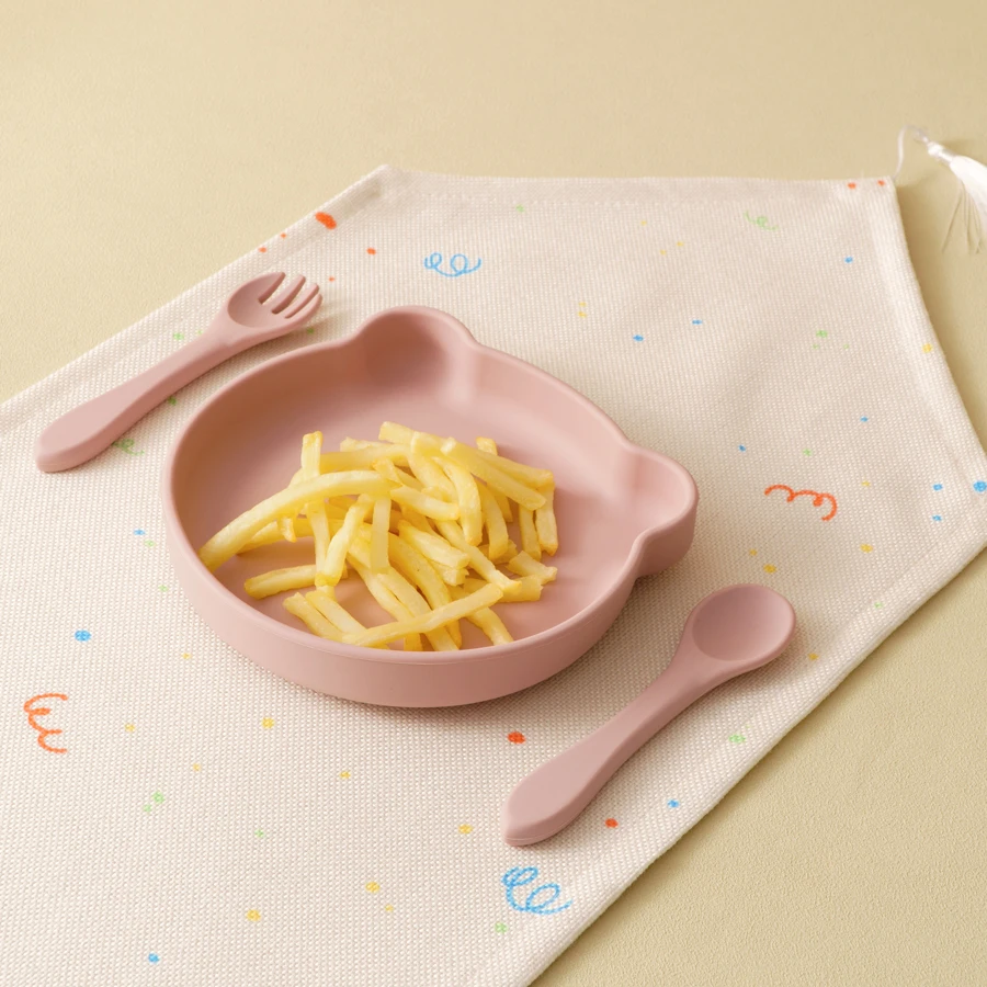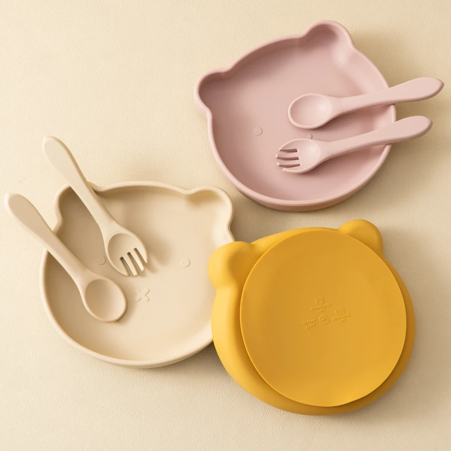 Wholesale Silicone Baby Feeding Set BPA Free Suction Dishes Plate Feeding Sucker Bowl Spoon Fork Children Tableware Baby Stuff
